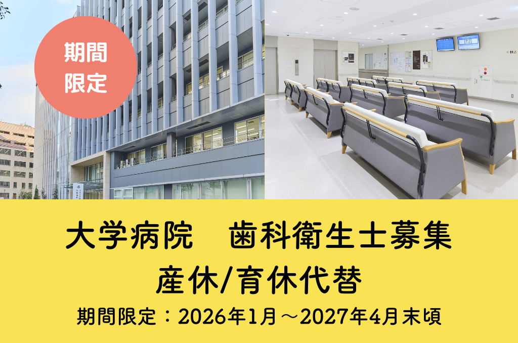 《御茶ノ水/歯科衛生士/派遣社員/産休育休代替》\人気の大学病院/診療2割・器具管理8割の大学病院で無理なく働ける"管理中心の歯科衛生士"募集