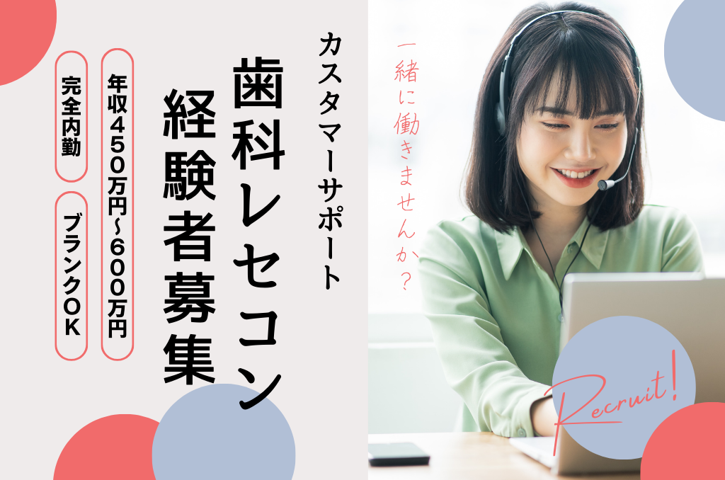 これまで歯科業界で培ってきた医院の業務フロー理解や、スタッフ・医院対応の経験をそのまま活かせるカスタマーサポート職です。事業拡大に向けた体制強化のための募集で、すでに歯科業界経験者が在籍しており、一人で抱え込むことのないサポート体制が整っています。外勤や移動が多い働き方ではなく、電話・Zoomを中心とした落ち着いた内勤業務がメイン。体力に頼る働き方から、知識と経験で評価されるポジションへ、無理なくシフトできます。