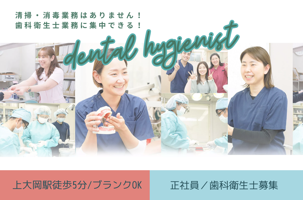 《上大岡駅徒歩5分/歯科衛生士/正社員》18時退勤残業なし◎ブランクOK◎清掃・消毒業務ナシ!歯科衛生士業務に専念できる歯科医院◎